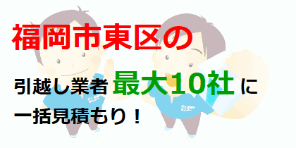 - 郵便番号をもとに、各社の訪問見積もり対応エリアをわり出すシステムになっておりますので、福岡市東区周辺の引っ越し業者にだけ一括見積もりすることが可能です。